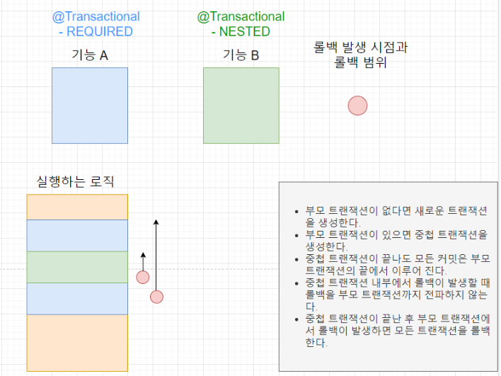 - 기존 트랜잭션이 있다면 중첩 트랜잭션을 생성한다.