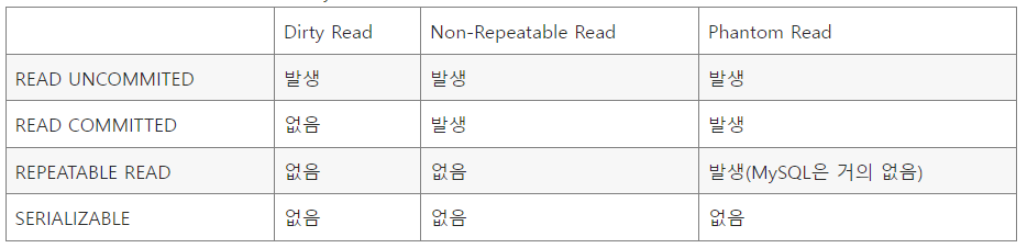 하지만 이런 REPEATABLE READ 단계도 Phantom Read 문제를 발생시킬 수 있는데, 새로운 row가 insert 되는것을 막지는 않기 때문이다.
